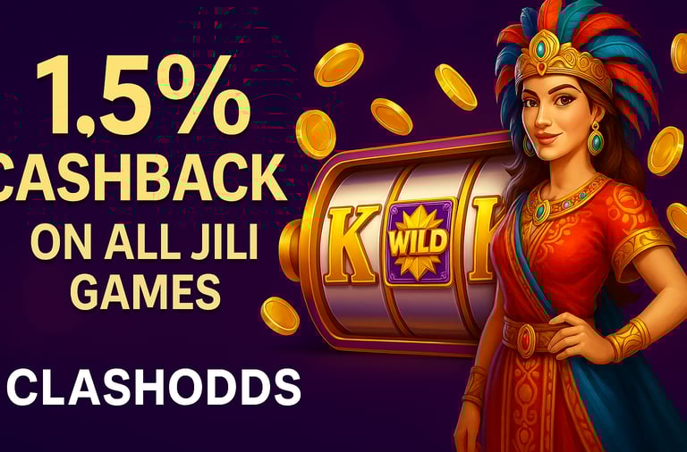 This November 10, 2025, experience the perfect combination of fun and reward with the 1.5% JILI cashback — exclusively at ClashOdds. Every spin matters, every bet earns back, and every player walks away a winner.